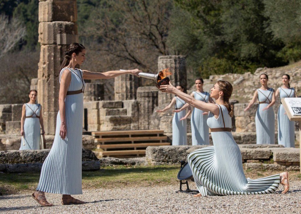 Ceremonia de Aprindere a Flăcării Olimpice va avea loc în Archaia Olympia, sanctuarul în care au avut loc Jocurile Olimpice Antice. În fața Templului Herei, se va ridica un nou pod între Jocurile Antice și cele Moderne, ceremonialul păstrează ritualul antic de aprindere a flăcării de la soare. Marea Preoteasa, înconjurata de 20 de „vestale”, va adresa o rugaciune lui Apollo. „Apollo, Zeu al soarelui si al luminii, trimite razele tale si aprinde torța sacră”.