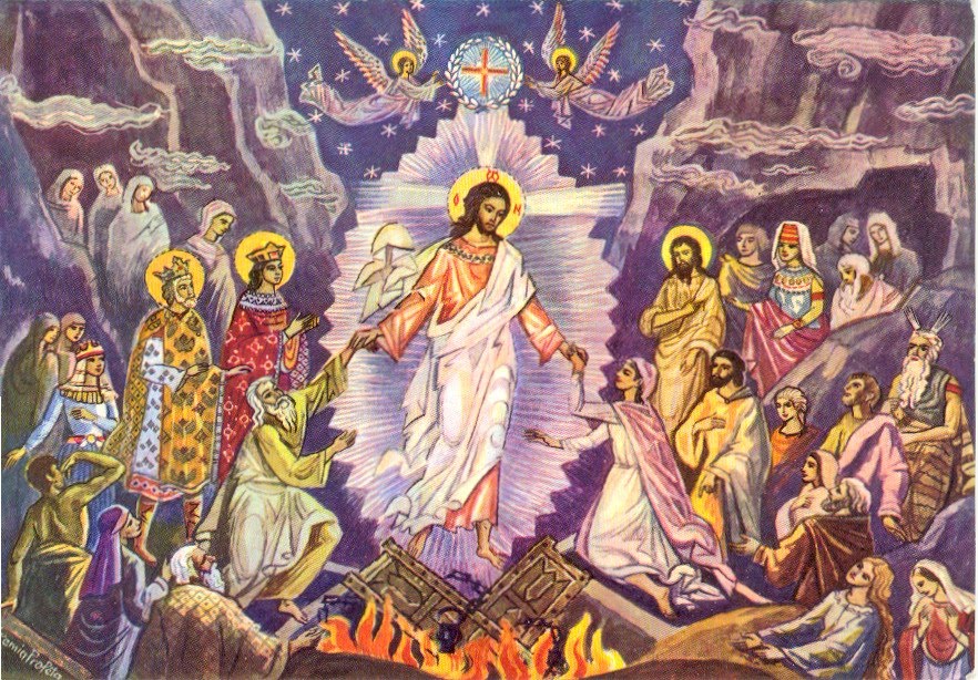 Sfântul Ioan Damaschin, autorul Canonului Sfintelor Paști, spune: „Deși Hristos a murit ca un om, iar sufletul Său S-a desprins din preacuratul Său trup, dumnezeirea Lui a rămas nedespărțită de amândouă, adică atât de trup, cât și de suflet”. Astfel, Hristos se pogoară în iad nu în postura de rob, ci de Stăpân al vieții și al morții, Biruitor al iadului, Izbăvitor al celor aflați acolo.