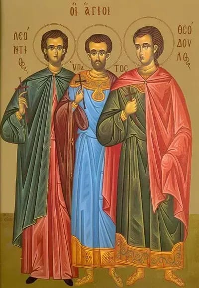 Sfinții Mucenici Leontie, Ipatie și Teodul au luat mucenicia în anul 73, în vremea persecuției împotriva creștinilor pornite de cezarul Adrian.