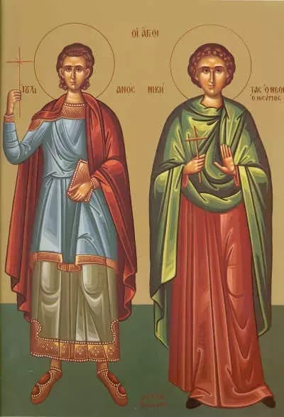 Deci împăratul le-a dat acea putere și a întărit-o cu o scrisoare, în care s-au adăugat și acestea: pretutindeni prin țări și prin cetăți, toți cei ce sunt în stăpânire, eparhi, domni și toți cei cu dregătorii, și rânduitorii de cetăți, să-i asculte pe ei, să le ajute în toate lucrurile și să le dea cele trebuincioase pentru zidirea bisericilor lui Dumnezeu, încă au luat binecuvântare și de la sfințitul patriarh ca să propovăduiască, să zidească și să sfințească bisericile. Deci acești doi sfinți ostași ai lui Hristos au mers, ca doi apostoli, prin țările împărăției grecești, propovăduind astfel numele lui Iisus Hristos la cei necredincioși. Ei întorceau pe mulți la Hristos Dumnezeu, nu numai cu cuvântul, dar și cu minunile încredințându-i, pentru că aveau dar și putere de la Dumnezeu a tămădui neputințele, a goni diavolii, a risipi pretutindeni capiștile idolești și a sfărâma idolii.