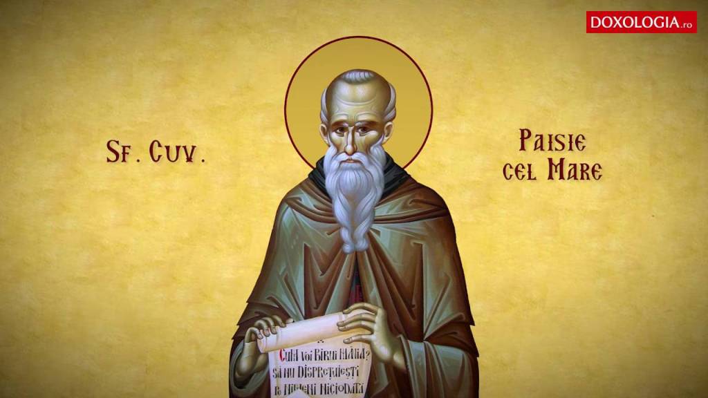 Biserica Ortodoxă săvârşeşte astăzi pomenirea Cuviosului Paisie cel Mare, vieţuitor în pustia Nitriei din Egiptul monahilor veacului al IV-lea. Ucenic al lui Avva Pamvo, Cuviosul Paisie a devenit, prin truda vieţuirii monahale, un adevărat Avva la care veneau creştini din toate părţile pentru a primi cuvânt de mângâiere şi învăţătură. Abţinerea aproape totală de la hrană şi de la somn l-au dus pe Avva Paisie pe culmi nebănuite ale sporirii duhovniceşti, aşa cum ne spune viaţa lui, scrisă de ucenicul Ioan Colovul.