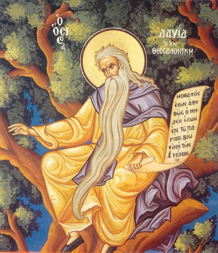 Cuviosul David, socotind petrecerea acestora, se sârguia cu tot sufletul a le urma cu toată puterea, ca să se facă împreună cu dânșii moștenitor în împărăția cerească. Citind și viețile cuvioșilor care s-au pustnicit după întruparea Mântuitorului și au săvârșit atâtea minunate nevoințe și vitejii, se înspăimânta și mai ales de Simeon din minunatul munte și de cel de un nume cu dânsul, de Daniil și de Patapie, stâlpnicii, care și-au petrecut viața, fără acoperământ, muncindu-se de vânturi, de ploi și zăpezi. Viețile acestora citindu-le, plângea și se umilea atâta, încât a luat hotărâre să petreacă cu aceeași strâmtoare, câtă vreme va putea pururea pomenitul, ca astfel să afle lărgime după moarte.
