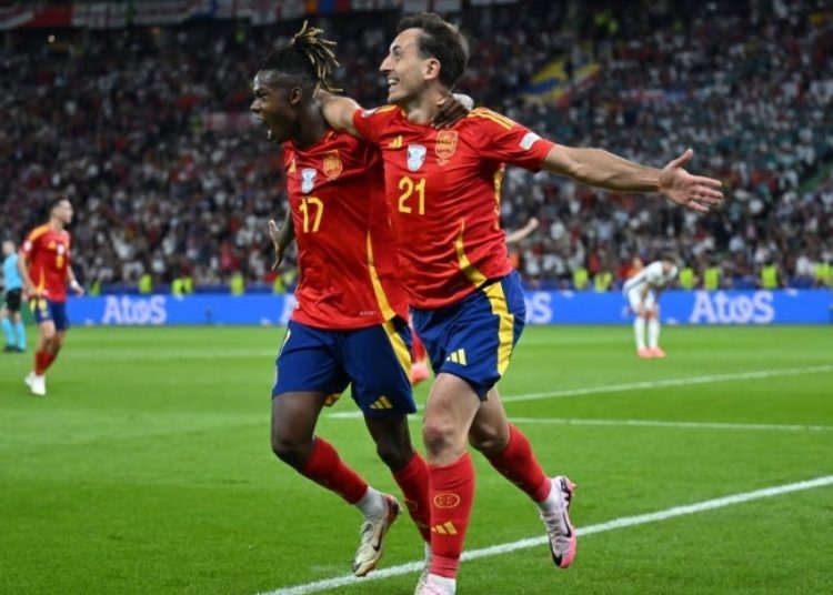 Șutul lui Lamine Yamal este blocat de portarul britanicilor, iar aceștia încă mai speră, însă cu doar câteva minute înainte de fluierul ce avea să ducă meciul în prelungiri, mai exact în minutul 86, Mikel Oyarzabal, înscrie. Fiesta poate să înceapă.