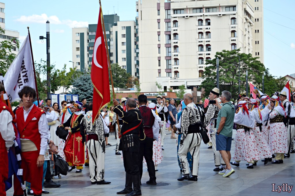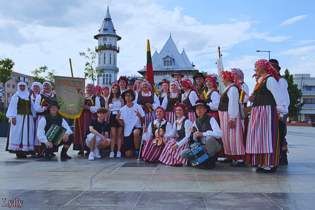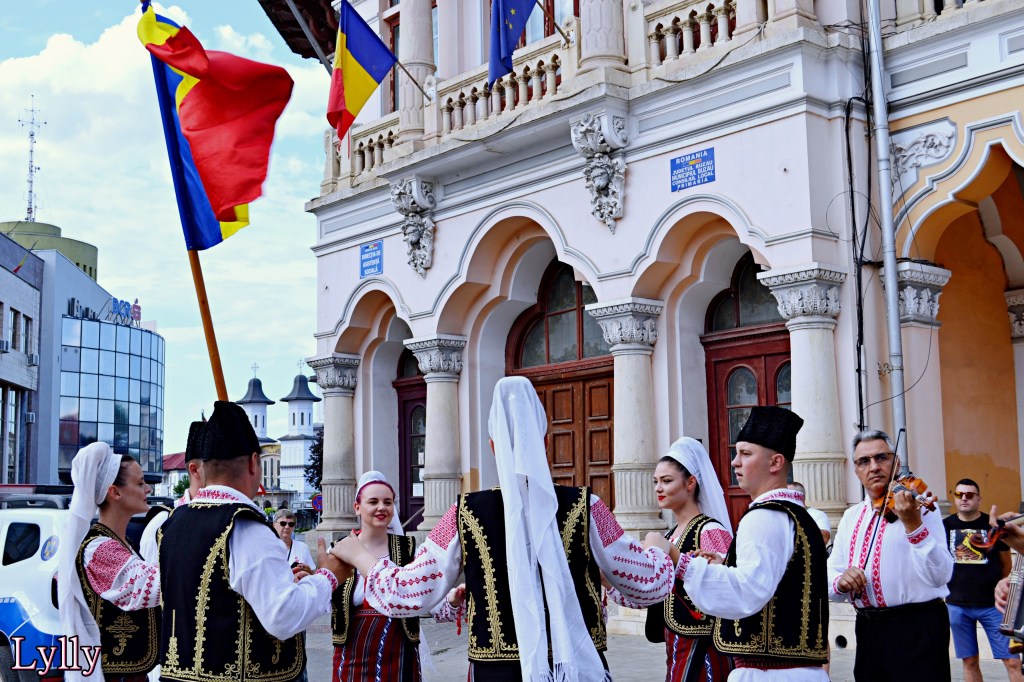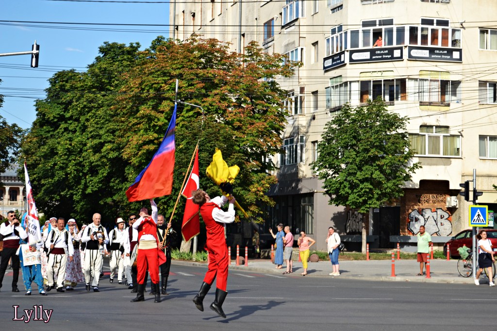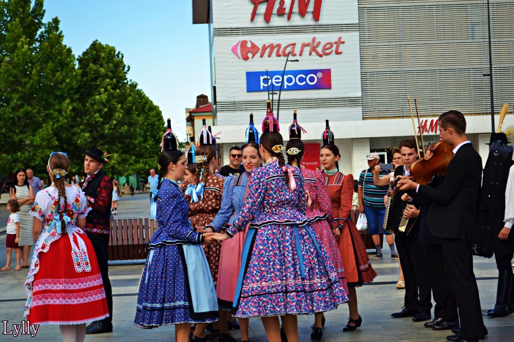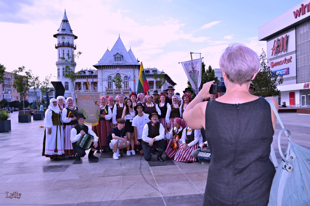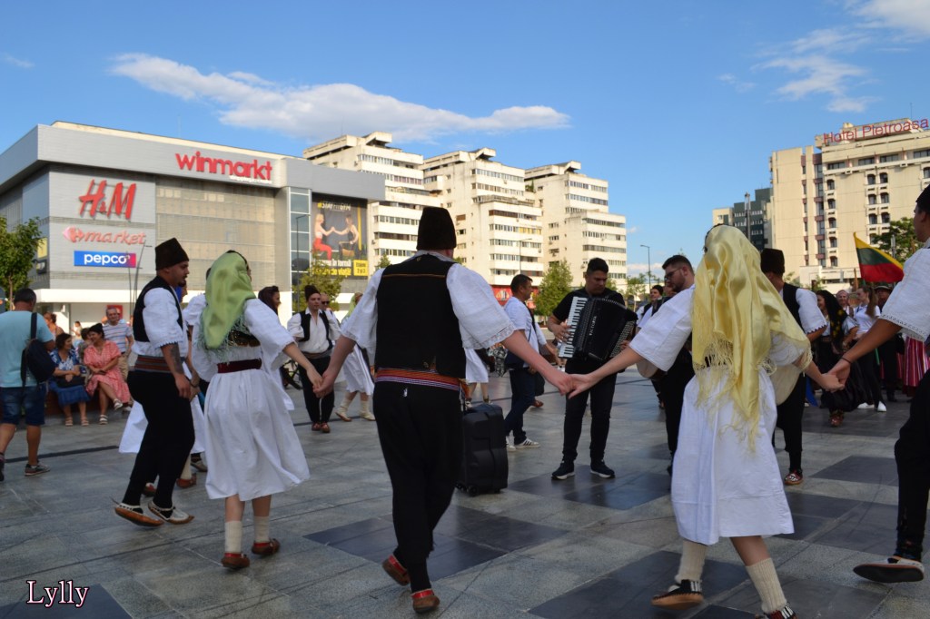 Piața Daciei s-a transformat în toată regula într-o scenă în aer liber. Ca la un semn, fiecare ansamblu a început să cânte, să danseze și să ne încânte cu o monstră din ceea ce am putea vedea dacă ne vom încumeta să mergem la Festivalului Internațional de Folclor „Plaiurile Mioriței”.