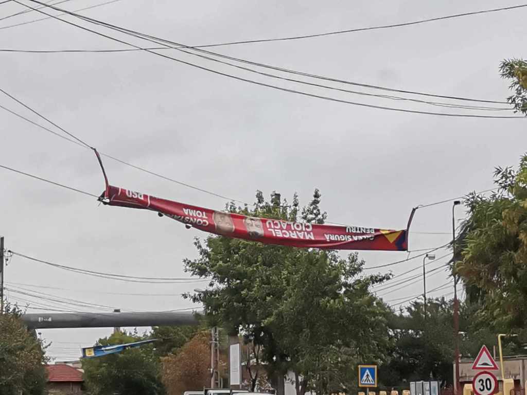 Opsss! Se pare că „băiatul cu sărut-mâna” și „un militar în slujba țării” n-au putut să rămână în picioare în fața distinsei doamne Ciclon, care nici bine nu s-a instalat.