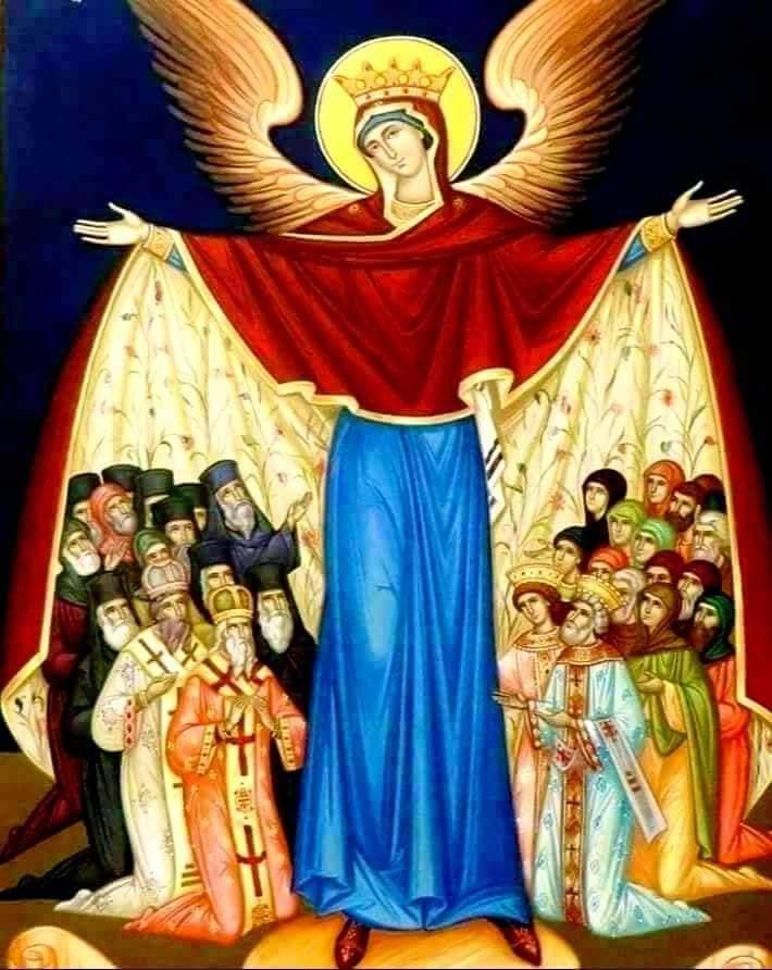 Știind şi noi pe solitoarea şi pe acoperitoarea noastră, să năzuim către dânsa cu umilinţă strigând: „Acoperă-ne pe noi cu acoperământul tău, Preasfânta Fecioară, în ziua răutăţilor noastre; acoperă-ne în toate zilele noastre, iar mai ales în ziua cea rea când sufletul de trup se va despărţi, de faţă să ne stai întru ajutor, şi să ne acoperi pe noi de duhurile cele rele din văzduh, cele de sub cer, şi în ziua înfricoşătoarei judecăţi, să ne acoperi pe noi întru ascunsul Acoperământului tău”.