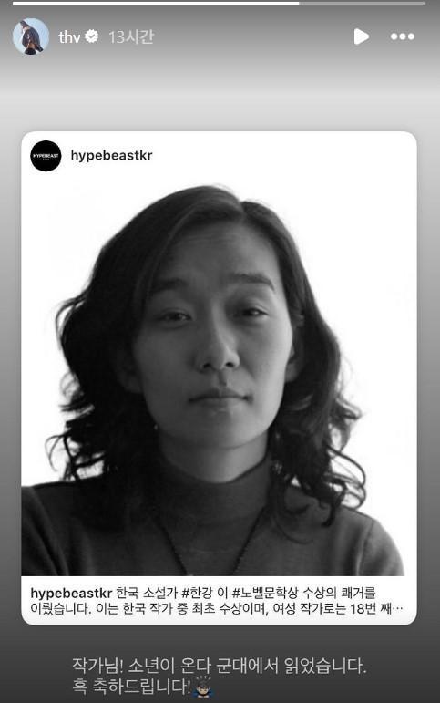 V de la BTS a deschis „balul” postând la câteva minute după aflarea veștii că Han Kang a câștigat prestigiosul Nobel pentru literatură.