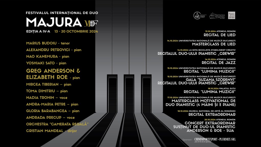 Bucureștiul redevine gazda unicului festival internațional de duo pianistic și lied. Festivalul Internațional de Duo Majura ediția a IV-a, 2024 celebrează din nou muzica clasică și jazzul între 13 și 20 octombrie! 🎹