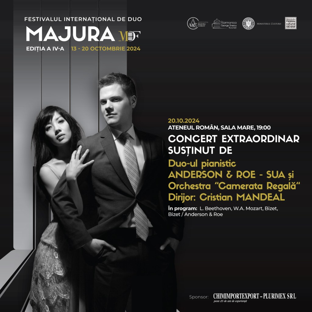 - Călătorie Sonoră Regală cu Anderson & Roe Piano Duo: renumiți în întreaga lume pentru virtuozitatea și creativitatea lor, vor susține un recital extraordinar pe 18 octombrie la Muzeul Național de Artă al României și vor fi cei care încheie festivalul pe 20 octombrie alături de Camerata Regală sub bagheta maestrului Cristian Mandeal la Ateneul Român.