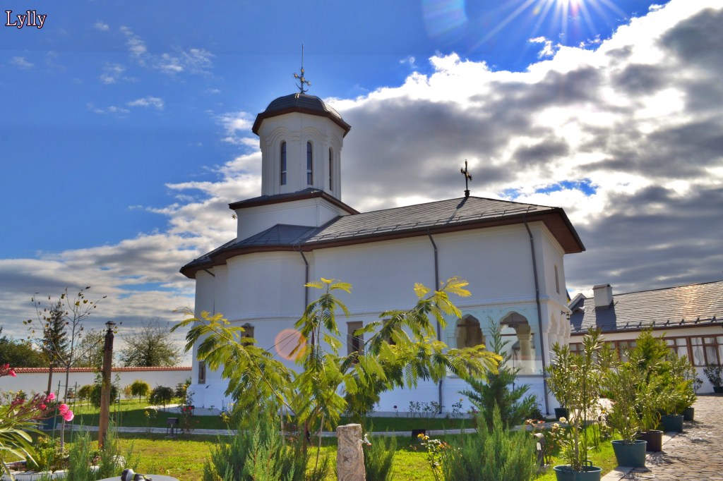 Totul e nou și proaspăt. Cel puțin asta îți dă de înțeles albul de pe zidurile din prejurul schitului, dar și de pe micul locaș de cult. De cum am intrat în curte am rămas plăcut surprinsă. Afară e toamnă, frunzele s-au îngălbenit, unele sunt chiar armămii, în timp ce altele au început să-și părăsească „casa”, dar, aici, totul era de un verde crud…totul era proaspăt. Mai că aș fi zis că abia a început primăvara.