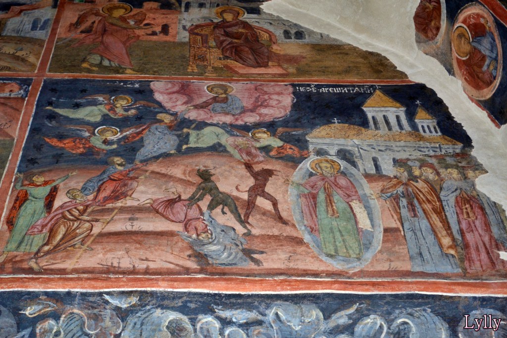 Și pentru că nu m-am mulțumit doar cu exteriorul, am dorit să intru în biserică să mă închin. De regulă, când vizitez un nou locaș de cult îmi place să rămân și să-i admir pictura. Mereu m-au fascinat scenele biblice pe care le reproduc pictorii, dar și modul și felul în care atât ele cât și Sfinții sunt reprezentați. Și, deși, am văzut multe picturi bisericești pot spune că niciuna nu seamnă cu cealaltă. Fiecare e unică în felul său.