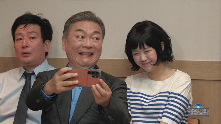 Kim l-a portretizat pe Jung In-sub, șeful șantierului naval al Hanwha Ocean de pe insula Geoje, care a fost criticat după ce și-a făcut un selfie cu Hanni în timpul auditului.