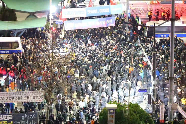 Un protestatar, domnul Jeong, în vârstă de 46 de ani, din Paju, provincia Gyeonggi, a spus: „Am venit aici pentru a le arăta soldaților care ne stau împotrivă puterea oamenilor. De aceea rămân aici în fața Adunării Naționale”.