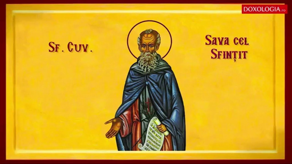 Cuviosul Părintele nostru Sava cel Sfinţit a trăit pe vremea împăratului Teodosie cel Mic. De loc era din Capadocia, iar părinţii lui se numeau Ioan şi Sofia. Chiar de la începutul vieţii lui a îndrăgit vieţuirea călugărească, aşa că a intrat de mic într-o mănăstire numită Flavian. Era atât de înfrânat încă din copilărie, ca văzând în grădină un măr şi dorind să-l mănânce, a zis: “Frumos era la vedere şi bun la mâncare fructul ce m-a omorât”. A luat mărul cu mâinile, dar nu l-a mâncat, ci l-a călcat în picioare şi lege şi-a pus să nu mănânce măr niciodată.