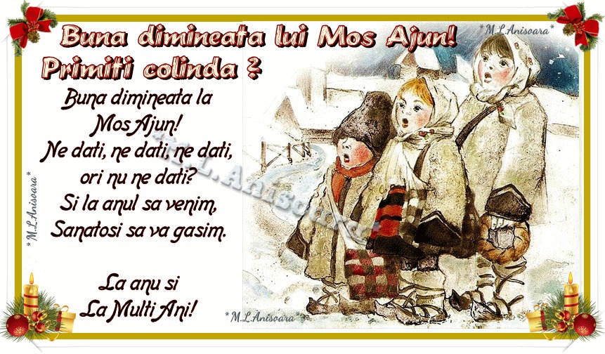 Copiii umblă cu Moș Ajunul (Ne dați ori nu ne dați…?!) și primesc mai ales nuci și covrigi. E bine să se împartă bucate, atât în numele morților, cât și ca semn de belșug, fiind prin excelență timpul darurilor. Lipsa reciprocității în această privință e rău văzută, iar pe alocuri se crede că zgârciții încasează pedepse de la Moșul (cele mai grele fiind ale celor care nu-i primesc pe urători în noaptea mare a Ajunului).