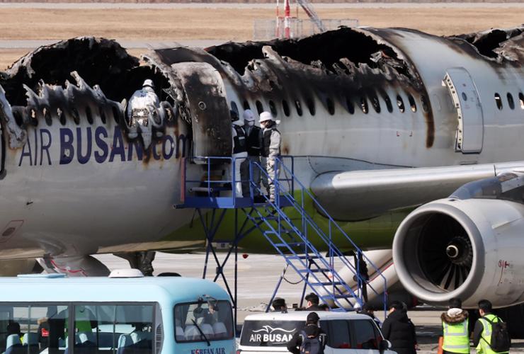 Martorii au declarat că au auzit un trosnet înainte ca fumul să umple cabina avionului Air Busan, care a luat foc marți seară, pe Aeroportul Internațional Gimhae din Busan.