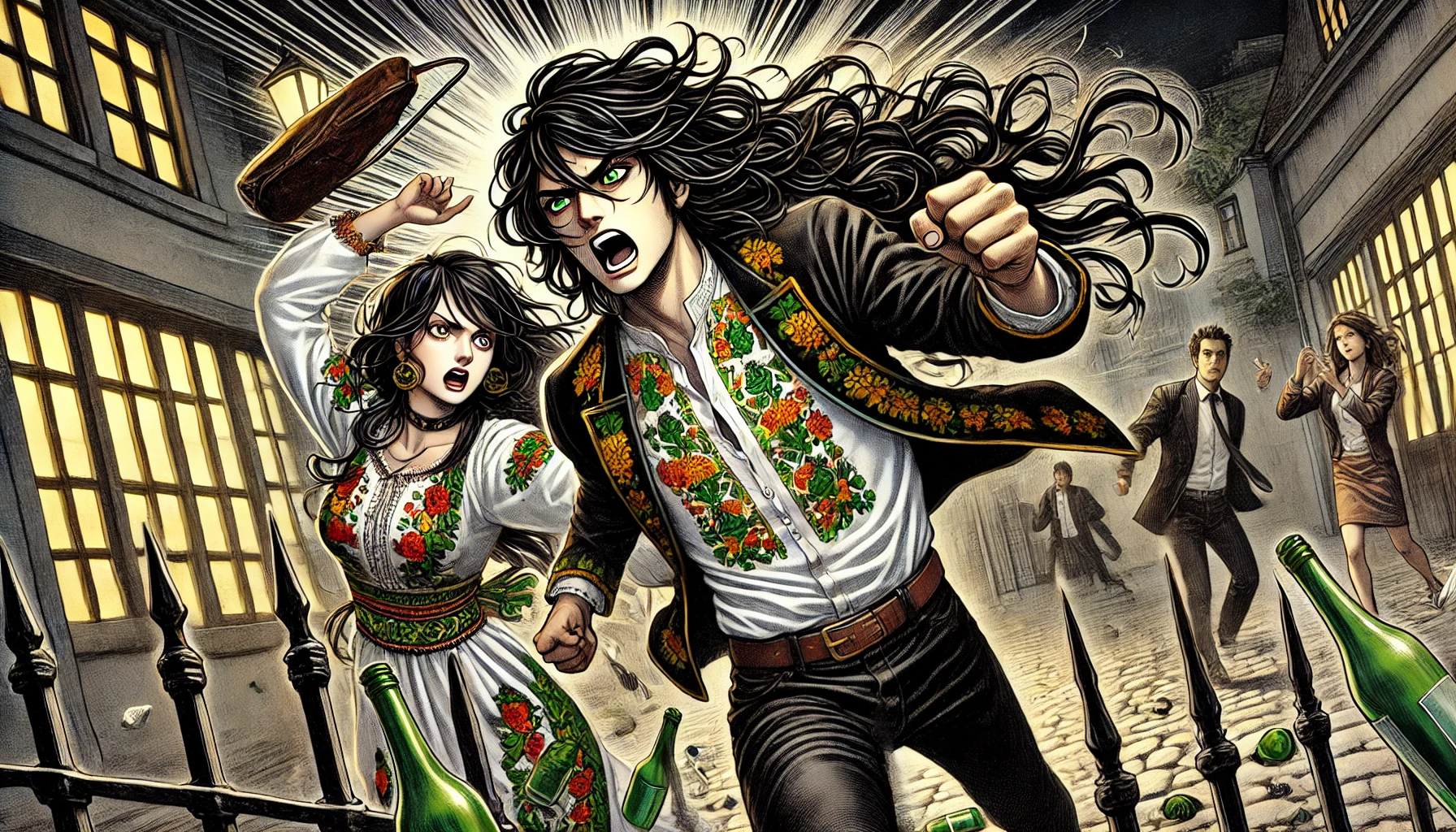 În fine, într-un moment de maximă sinceritate, Contesa a început să mă lovească cu geanta-n cap (tocmai ce vă spuneam mai sus), eu m-am dezechilibrat, am căzut și… am deschis o poartă. Alarmele au început să sune. Nu am o experiență prea plăcută cu sirenele acustice… mai ales când sunt beat și îmi aduc aminte de trecut. Nu știu când m-a ridicat, ce-i drept îmi amintesc că am luat-o pe Contesă de mână și am început să alerg de parcă toată poliția capitalei era pe urmele mele.