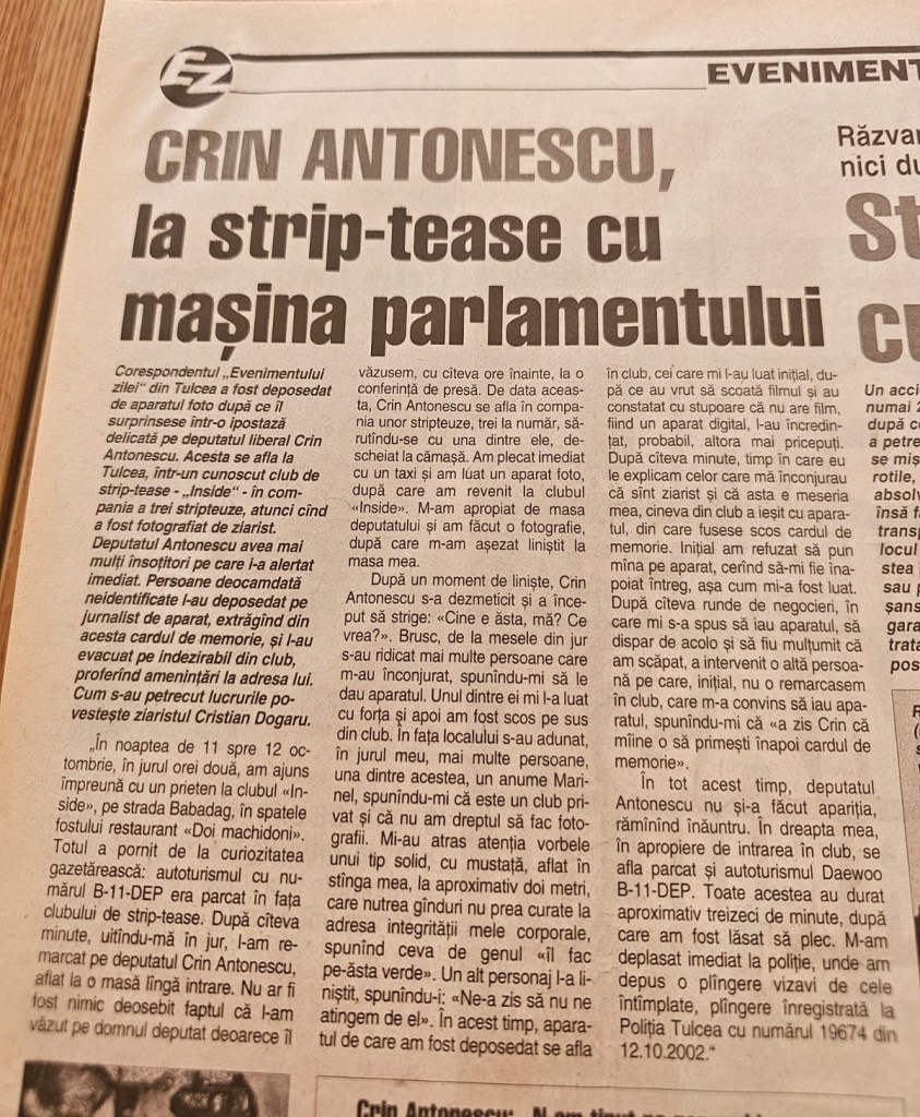 Ziarul Evenimentul Zilei, iar articolul îl găsiți aici: https://psnews.ro/foto-exclusiv-lupul-moralist-crin-antonescu-la-striptease-cu-masina-parlamentului-romaniei/