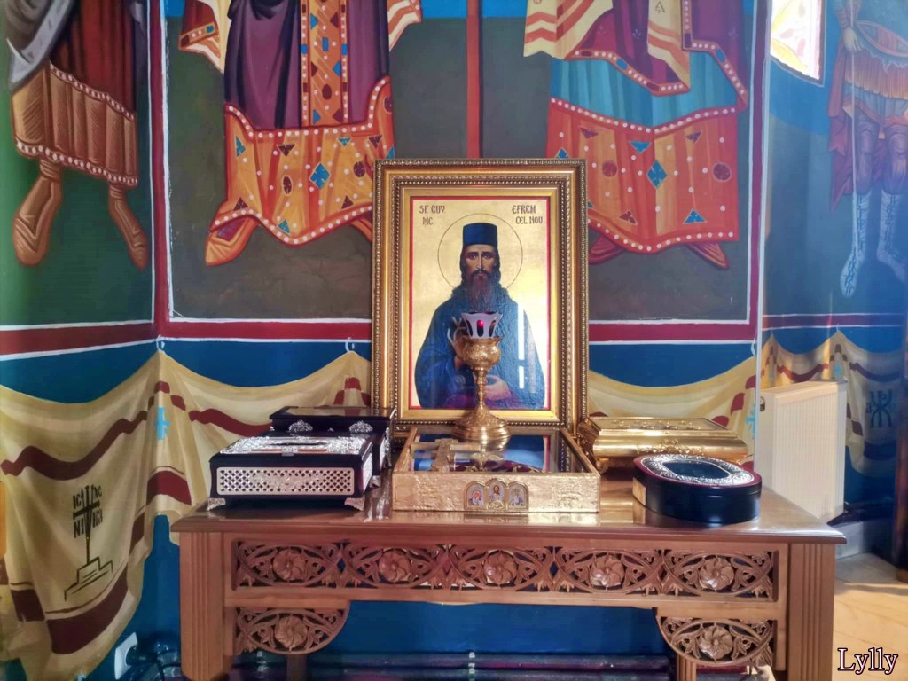 M-am dus și m-am închinat în liniște și cu o ușoară sfială, deși repet, în afară de Sfinții de pereți, din icoane și de cei ale căror Sfinte Moaște le adăpostește locașul de cult, nu mai era nimeni.