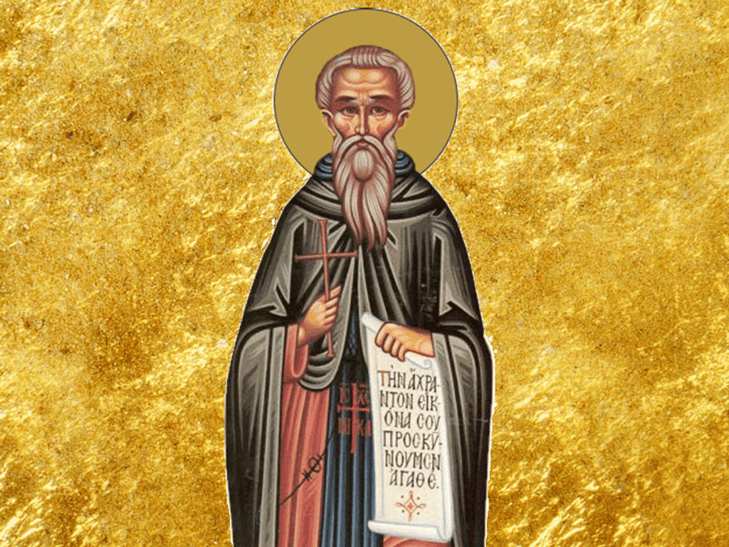 Acest sfânt a intrat de tânăr în viaţa monahicească şi deprinzându-se cu tot felul de nevoinţe, s-a curăţit pe sine în chip desăvârşit. Iar mai pe urmă, mustrând vitejeşte şi dispreţuind pe cei ce defăimau păgâneşte rânduiala întrupării Mântuitorului nostru şi nu se închinau icoanei întrupării lui Hristos, a încredinţat adevărul dreptei credinţe, nu numai prin cuvinte, ci chiar prin pătimirile sale. Pentru aceasta s-a arătat mare mărturisitor; şi făcând multe minuni, s-a mutat către Domnul.