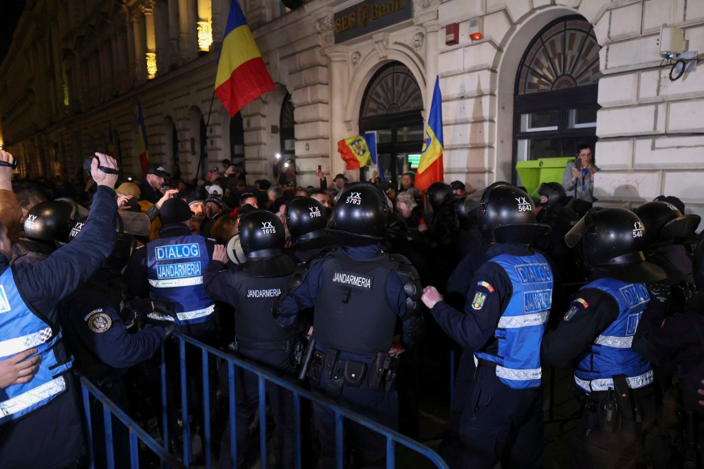Potrivit unui comunicat al Jandarmeriei, participanții la proteste au forțat cordonul de jandarmi, încercând să intre în clădirea instituției. Pentru a controla situația și a preveni escaladarea violenței, jandarmii au folosit un pulverizator de mână cu substanță iritant-lacrimogenă.