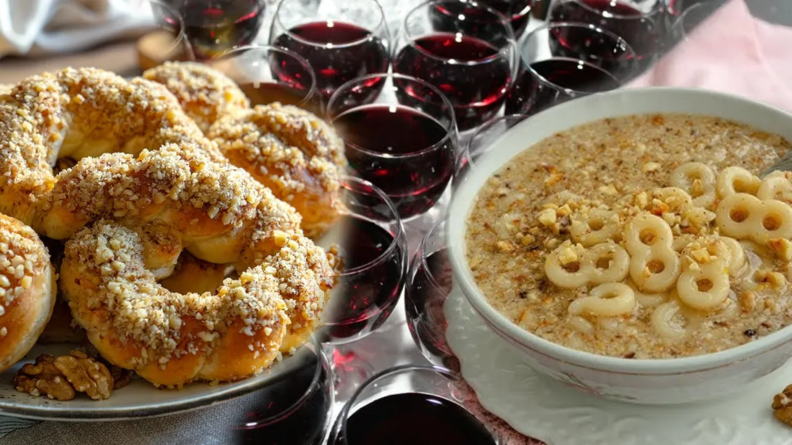 - Mucenici zeamă : Biscuiți mici, fierți, în formă de „8” sau „infinită”, presărați cu zahăr/miere, scorțișoară și nucă.
