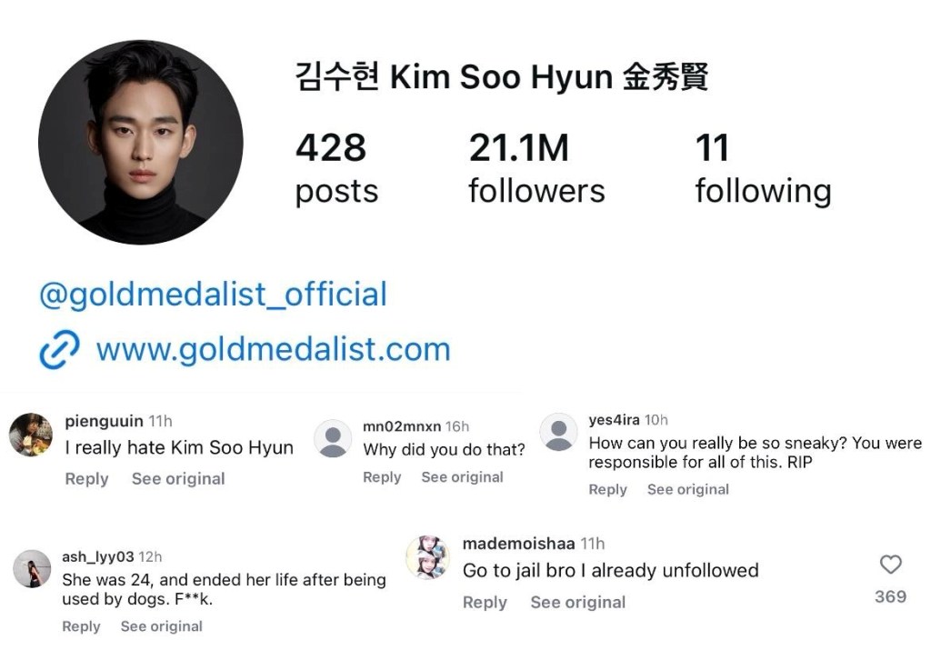 După scandalul izbucnit pe 10 martie 2025, în care au fost aduse acuzații grave la adresa actorului sud-coreean Kim Soo Hyun și a regretatei Kim Sae Ron, contul de Instagram al lui Soo Hyun a fost inundat cu mesaje de ură și critici din partea fanilor și internauților.