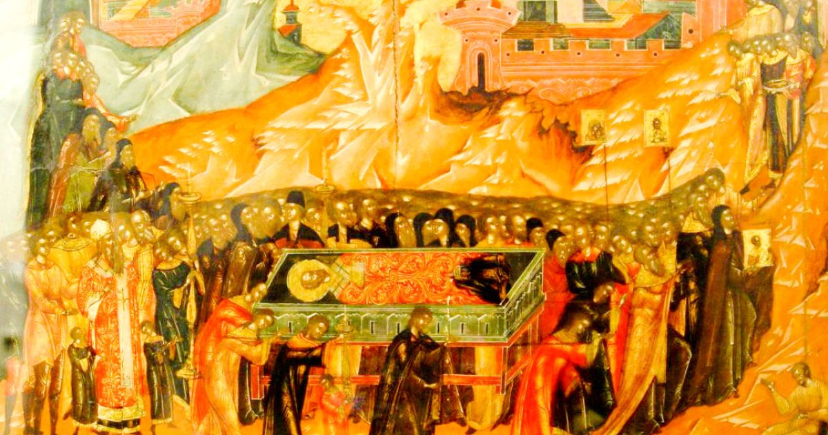 După ce urâtorul de Dumnezeu împărat Teofil a încetat din viaţă, iar sceptrul împărăţiei a fost luat de binecredincioşii împăraţi Teodora şi Mihail, pe lângă toate celelalte fapte bune pe care le-au făcut, ei s-au arătat, deopotrivă, plini de evlavie faţă de toate cele sfinte. Mânaţi fiind de astfel de gânduri, ei au trimis de au chemat pe cei mai de seamă dintre monahii timpului, cercetând împreună cu ei cele ce trebuiau săvârşite pentru punerea din nou în cinste a sfintelor icoane.