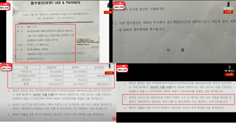 De asemenea, a solicitat ca Gold Medalist să recunoască contribuția lui Kim Sae Ron ca membru fondator al agenției și să își ceară scuze pentru cererea de rambursare a sumei de 700 de milioane KRW (aproximativ 482.400 USD) trimisă prin notificare legală.