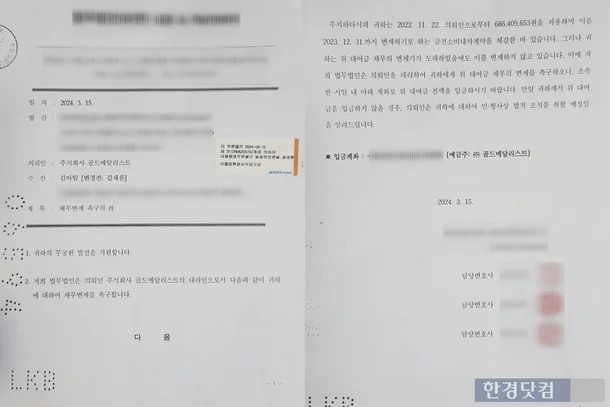 Prima notificare, datată 15 martie 2024, a fost trimisă de către Gold Medalist către Kim Sae Ron (cunoscută legal sub numele de Kim Ah Im după schimbarea numelui).