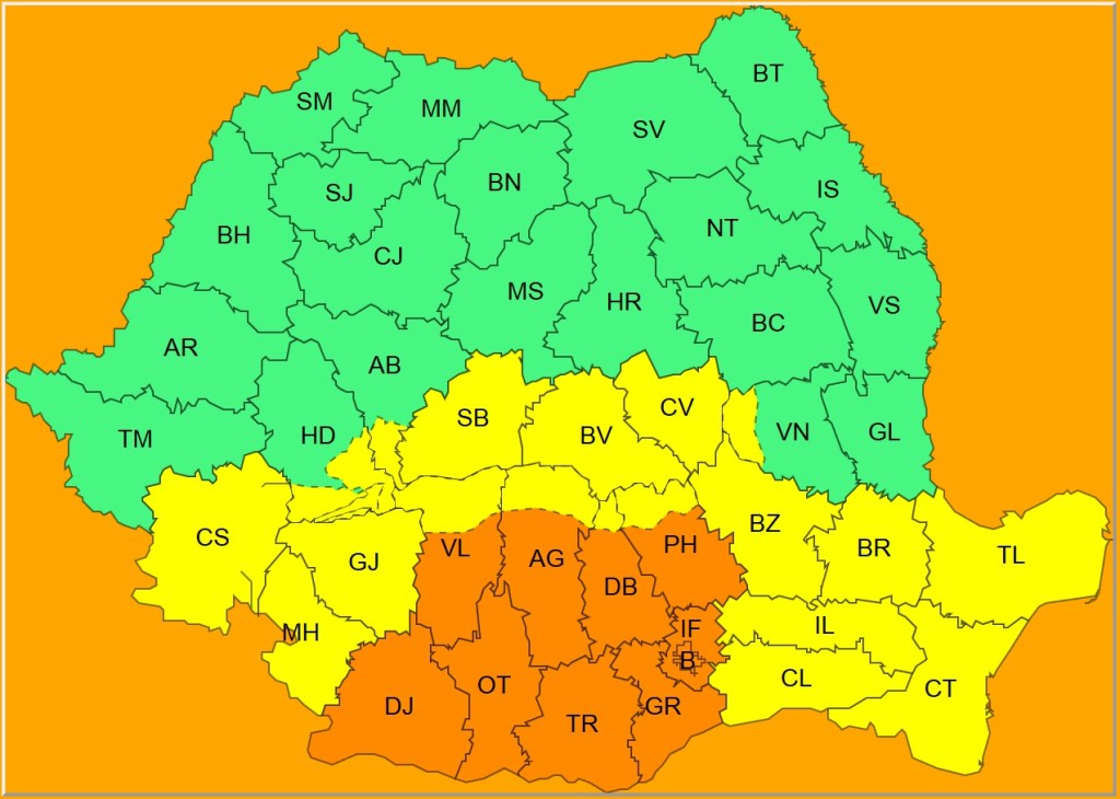 Potrivit atenționărilor emise de ANM, vântul va atinge viteze de 70-90 km/h în județele Dolj, Olt, Teleorman, Giurgiu, Ilfov, municipiul București și în zona joasă a județelor Vâlcea, Argeș, Dâmbovița și Prahova.