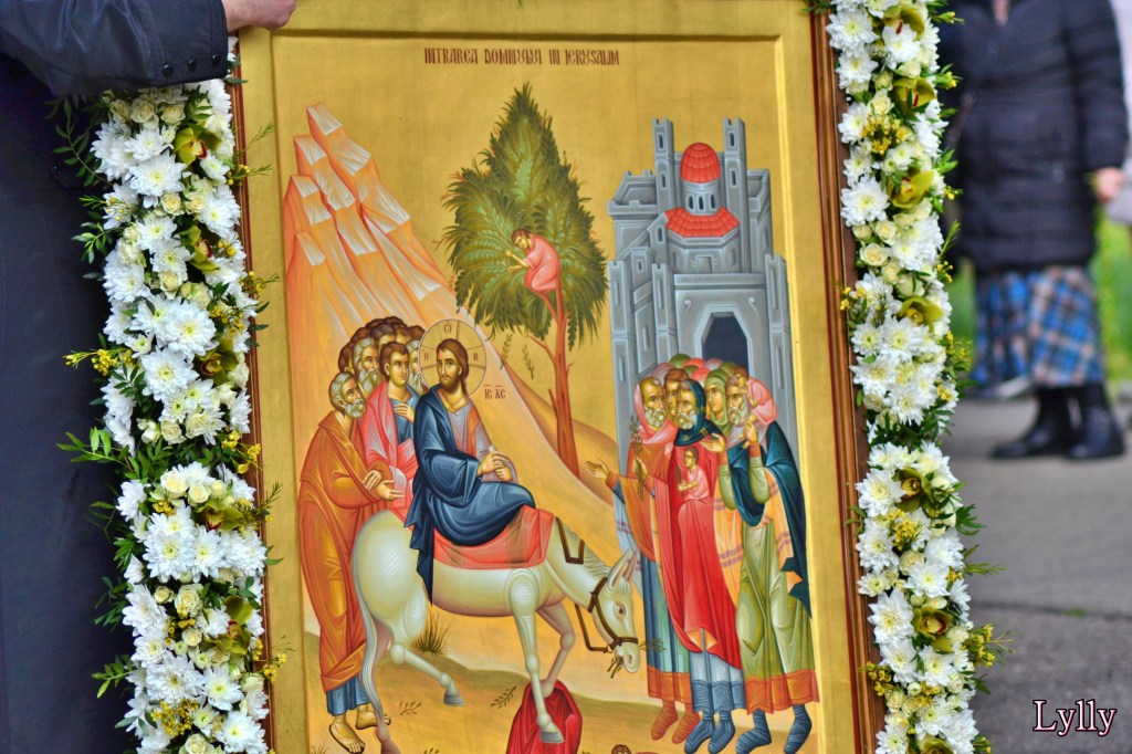 „Astăzi, harul Sfântului Duh pe noi ne-a adunat și toți, luând Crucea Ta, zicem: Bine ești cuvântat, Cel ce vii întru numele Domnului; Osana, Celui dintru înălțime”.