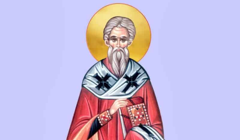 Acest sfânt se trăgea din ţara galatilor, din satul ce se cheamă Sicheot, născut fiind în vremea lui Iustinian cel bătrân, părând a nu fi de naştere lăudată, fiindu-i naşterea neche-zăşuită şi întunecată, căci se zice că maică-sa Maria, strălucind în frumuseţe şi daruri, a atras la dânsa pe oarecare din curierii împărăteşti, anume Cosma, din care s-a născut cuviosul; dar ar fi fost fără cuviinţă şi de mustrare a ascunde cele de după naşterea lui sau rele dinainte de naştere; că îndată într-acea noapte ce s-a unit maică-sa cu acel bărbat, i s-a arătat în vis, că s-a pogorât un luceafăr şi a intrat în pântecele ei, ceea ce arăta strălucirea ce era să aibă mai pe urmă pruncul. Iar sfântul ca această înţelegere să fie împlinită mai apoi, căci dându-se pe sine dintru întâia vârstă spre dragostea lui Dumnezeu şi a sfântului mucenic Gheorghe, atât cât i se părea că este totdeauna cu dânsul de-l învăţa şi-l făcea a înainta spre cele mai bune dorinţe şi cu totul a-l iubi cu o dumnezeiască şi minunată dragoste. Făcând el aşa, şi înaintând cu fiecare suişi se arăta pururea sfântul. A fost numărat întâi în ceata călugărilor. După aceea trecând prin treptele ce duc spre culmea virtuţii şi îmbogăţindu-se cu lucrarea minunilor, ca dovadă a desăvârşitei virtuţi şi a apropierii de Dumnezeu, a fost ridicat la marea înălţime a arhieriei, şi i s-a încredinţat Biserica Anastasiopolei. Acolo învăţând el pe mulţi cunoştinţa lui Dumnezeu, şi îndrumându-i a face cele ce se cuvin, şi tămăduind pretutindenea pe cei de un neam prin minuni şi prin fapte minunate, pe toţi uimind; şi arătându-se minunat şi iubit la împăraţi şi la arhierei, şi proorocind multora cele ce aveau să fie, şi-a încheiat viaţa primind cu zâmbire cuvioasă pe îngerii ce aveau să-l ia. Se spune că cu puţin înaintea morţii, i s-a arătat în vis strălucitul mare mucenic Gheorghe şi i-a dat un toiag. Apoi i s-a arătat iarăşi călare pe un cal, trăgând cu sine şi alt cal, pe care a poruncit cuviosului să încalece, arătându-i cu aceste vedenii dinainte calea ce avea să facă de acolo.