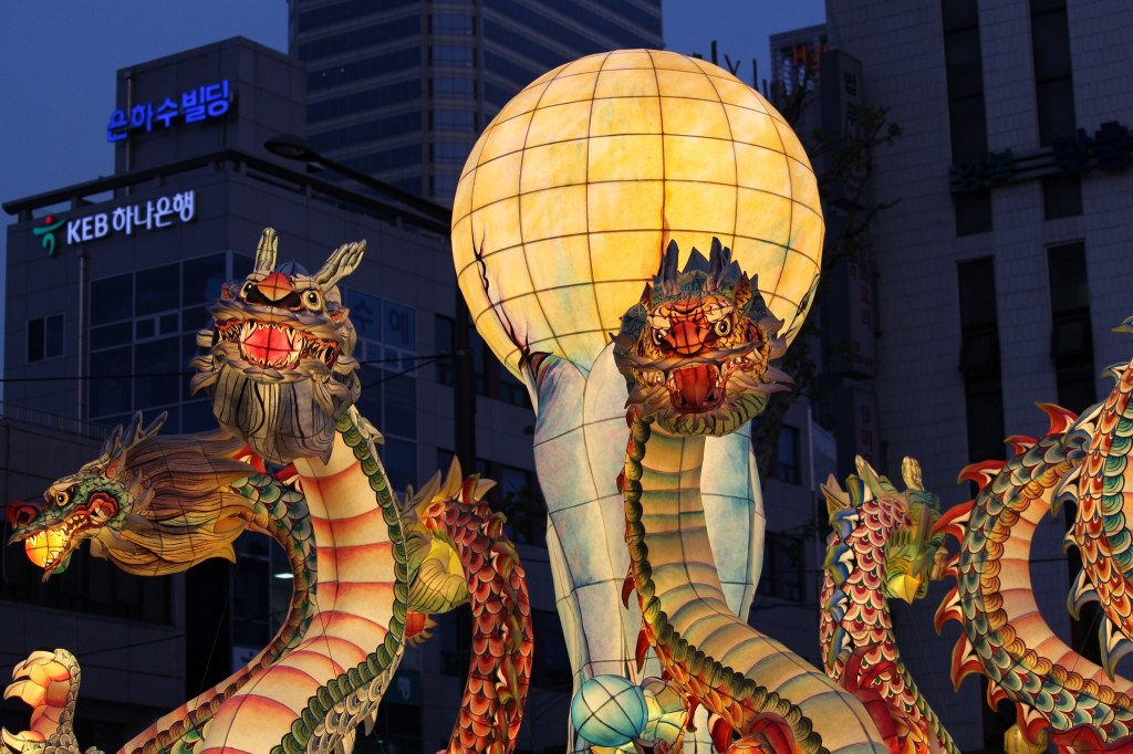 Una dintre cele mai frumoase părți ale festivalului este parada cu felinare, unde participanții poartă hanbok-uri – hainele tradiționale coreene – și mărșăluiesc cu zâmbetul pe buze, ținând în mâini felinare luminoase de toate formele și dimensiunile. De la dragoni colorați la flori gigantice și figuri simbolice, fiecare float este o operă de artă în mișcare.