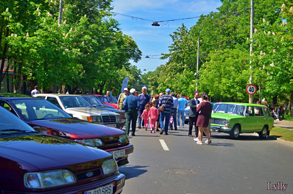 Zeci de automobile de epocă, bijuterii ale tehnicii de altădată, au fost aliniate cu grijă de-a lungul bulevardului, așteptând parcă să-și spună poveștile în fața unui public captivat.