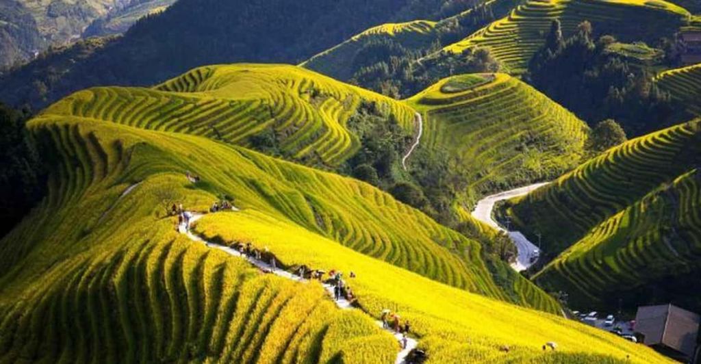Săpate cu migală de comunitatea Zhuang încă din vremea dinastiei Yuan, aceste terase se întind pe versanți înclinați la peste 1.100 de metri altitudine. Departe de a fi doar o atracție vizuală, Longji reprezintă o minune agricolă funcțională: 50.000 de tone de orez sunt recoltate anual, într-un sistem care respectă în totalitate ritmurile naturii.