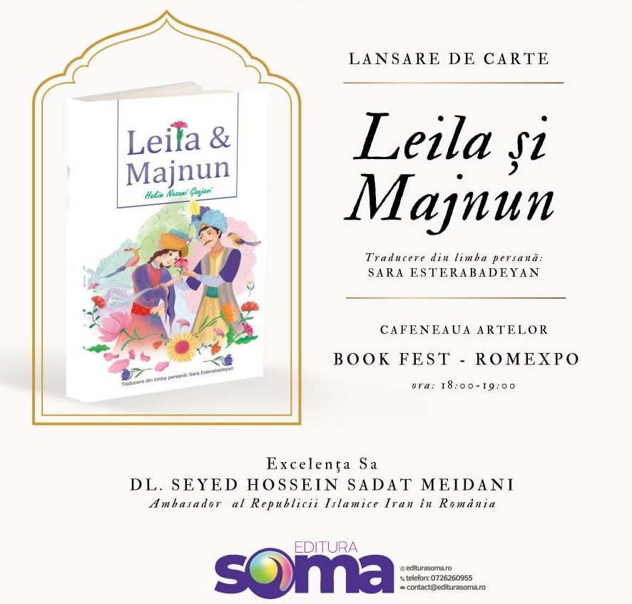 Într-o epocă a grabnicelor povești, o iubire legendară își face din nou loc în inimile noastre. Tradusă pentru prima dată în limba română, capodopera persană Leila și Majnun va fi lansată oficial în cadrul Salonului Internațional de Carte Bookfest 2025, pe 29 mai, la Cafeneaua Artelor din Romexpo.