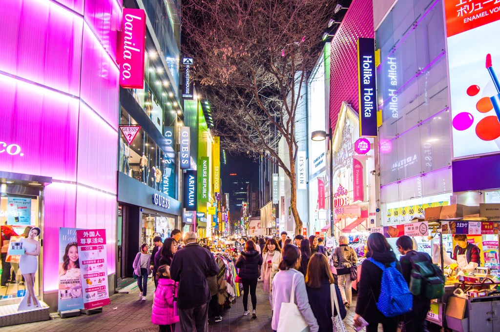 Cunoscut ca fiind centrul K-Beauty din Seul, Myeongdong este locul unde găsești cele mai populare branduri coreene de skincare și makeup: