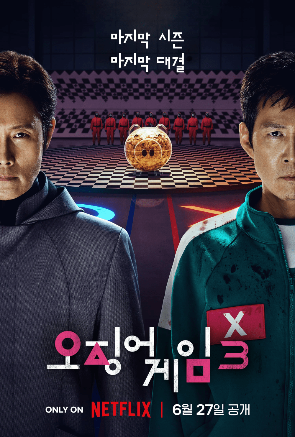 Pe 13 iunie, echipa din spatele serialului „Squid Game” Sezonul 3, scris și regizat de Hwang Dong Hyuk, a dezvăluit posterul final al seriei, care sugerează o confruntare majoră între personajul principal, Gi Hun (interpretat de Lee Jung Jae), și temutul supraveghetor al jocului, cunoscut sub numele de Front Man (interpretat de Lee Byung Hun).