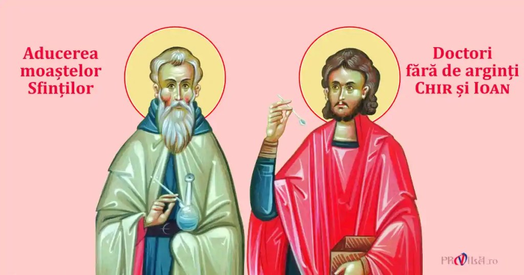 În această lună, în ziua a douăzeci și opta, pomenirea aflării cinstitelor moaște ale Sfinților Mucenici Chir și Ioan.