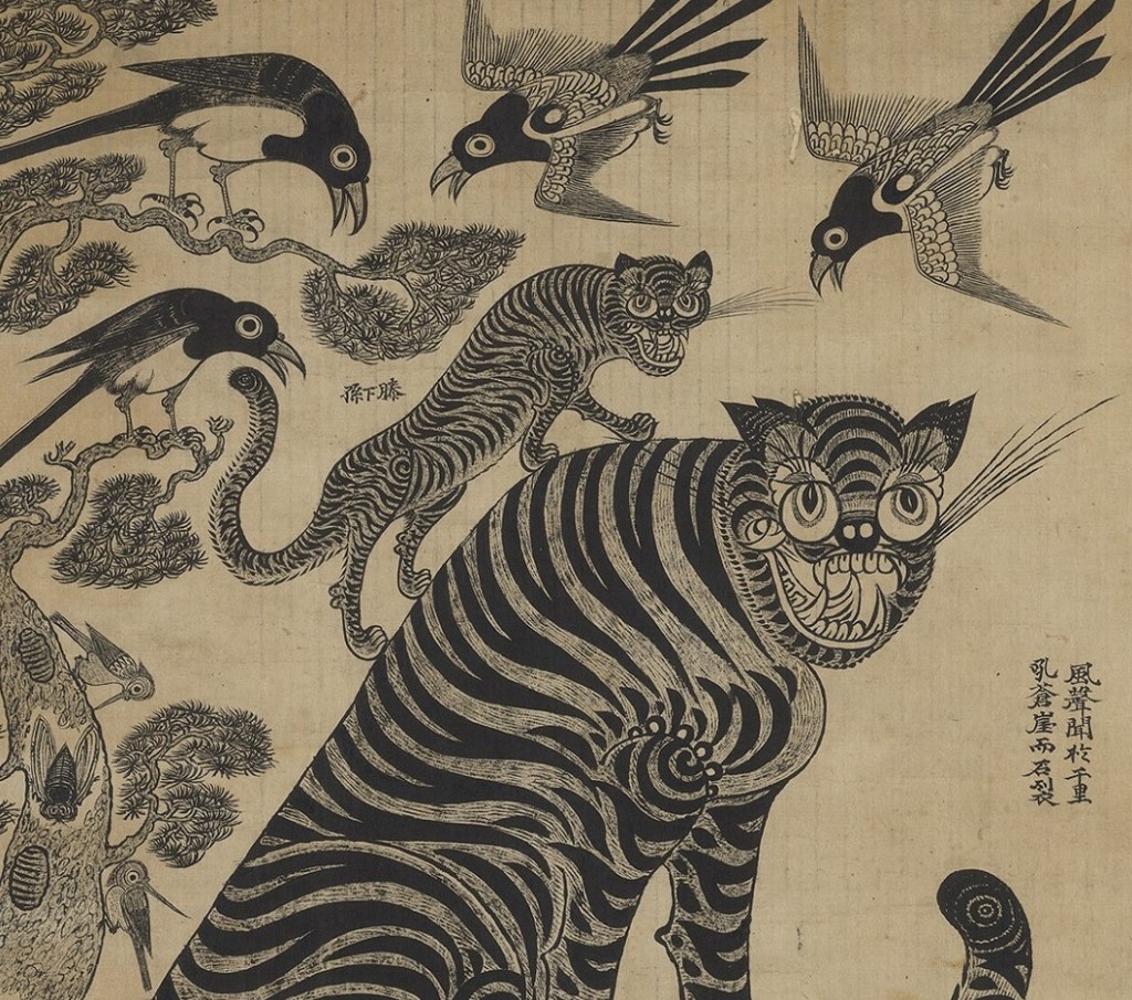 În cultura coreeană, tigrul este mai mult decât un prădător fioros – este adesea reprezentat în moduri inedite și expresive, uneori chiar amuzante. În picturile hojakdo (tigru și coțofana), tigrul apare zâmbind, mirat sau chiar puțin nedumerit, reflectând o combinație de înțelepciune, umor și blândețe. Această viziune diferă radical de imaginea clasică a tigrului ca simbol pur de forță și agresivitate.