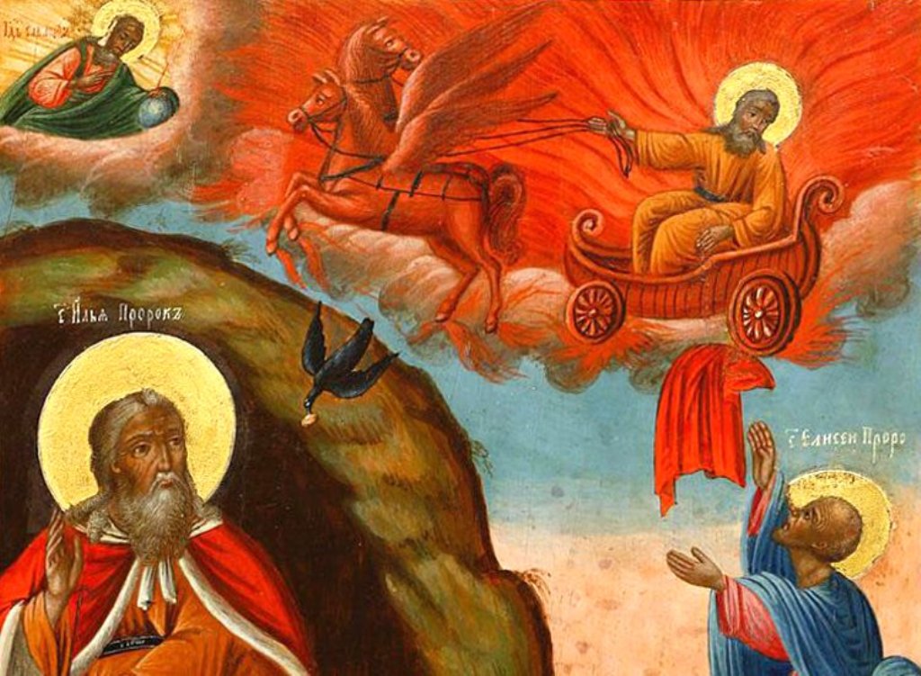 Spre deosebire de alți oameni ai Vechiului Testament, Sfântul Ilie nu a murit, ci a fost înălțat la cer într-un car de foc tras de cai de foc, în timp ce se afla în pustie alături de ucenicul său Elisei (cf. 4 Regi 2). Acest eveniment miraculos este interpretat de Biserică drept semn al sfințeniei desăvârșite și al apropierii sale unice de Dumnezeu.