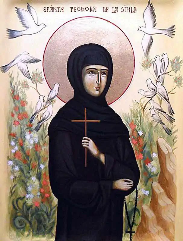 Tot în această ziuă facem și pomenirea Preacuvioasei Maicii noastre TEODORA DE LA SIHLA, care a sihăstrit mulți ani, la sfârșitul secolului al XVII-lea, într-o peștera din preajma Schitului Sihla-Neamț.