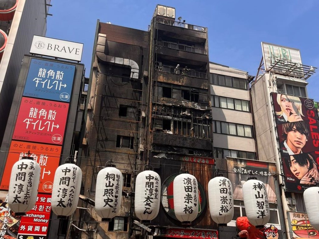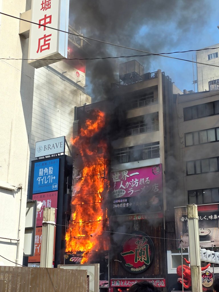 Flăcările au cuprins rapid o clădire cu mai mulți chiriași situată lângă faimosul pod Ebisubashi, celebru pentru emblematica pancartă cu alergătorul de la Glico.