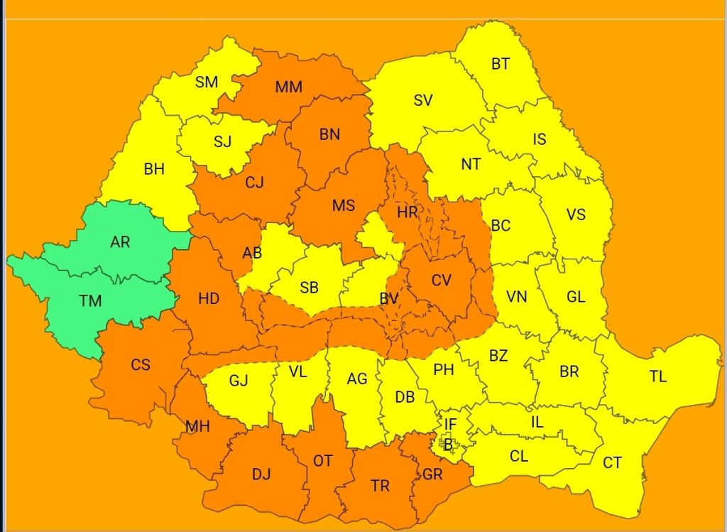 În județele Caraș-Severin, Hunedoara, Cluj, Mureș, Bistrița-Năsăud, Maramureș și Covasna, precum și în zonele montane, se vor înregistra: