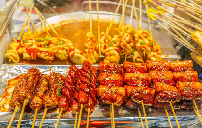 În orașul Silim-dong, sundae-ul, celebra cârnată coreeană cu sânge, se reinventează în zeci de variante: aburite, prăjite sau servite cu sosuri picante. Această alee devine un adevărat paradis pentru gurmanzii curioși, oferind o incursiune în mâncărurile tradiționale mai puțin cunoscute publicului larg.