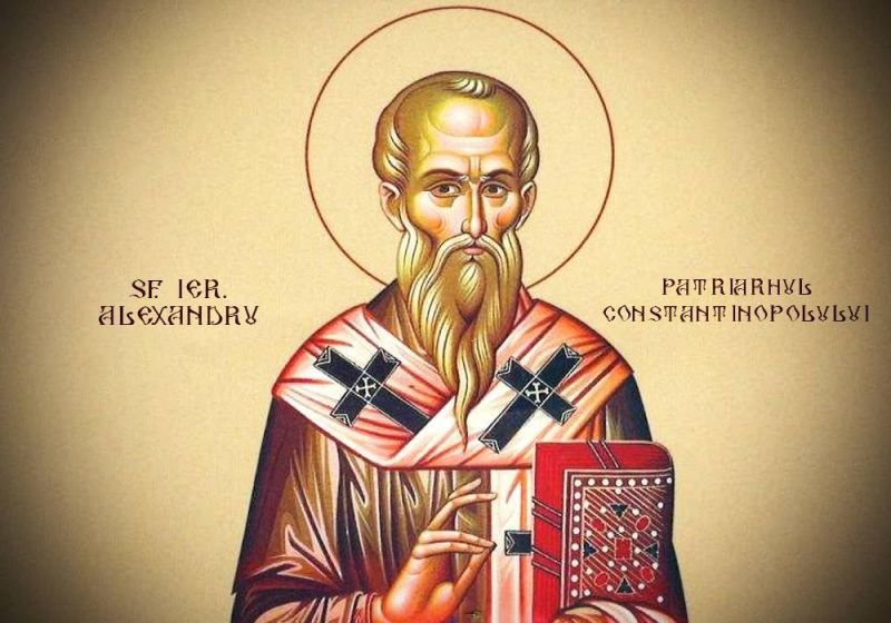 Ducându-se Sfântul Mitrofan la Domnul, a fost pus, ca al doilea ierarh al Bizanțului și primul al Constantinopolului, Alexandru. El a păstorit bine turma cea cuvântătoare a lui Hristos și aducea la dreapta credință pe eretici și pe păgâni, pentru că nu numai cu arienii avea mare luptă, dar și cu filosofii păgâni. Unii dintre acești filosofi, îndrăznind, se apropiau de împărat și îl certau, că a lepădat credința cea veche părintească, a lepădat legile romane și a primit o credința și o lege nouă, care va fi, ziceau ei, nu spre întărire, ci spre risipirea împărăției. Ei rugau pe împărat să le poruncească să întrebe de credință pe Sfântul Ierarh Alexandru; deci, împăratul a poruncit să se facă întrebare înaintea poporului. Sfântul Ierarh Alexandru, fiind plin de Duhul Sfanț, a încuviințat aceasta.