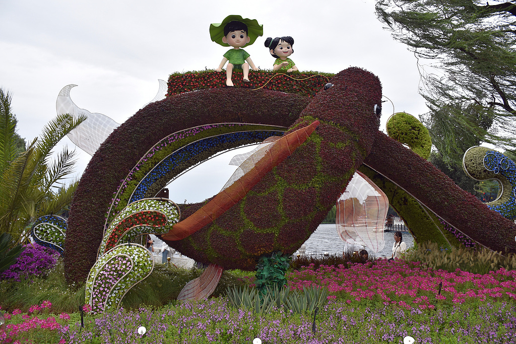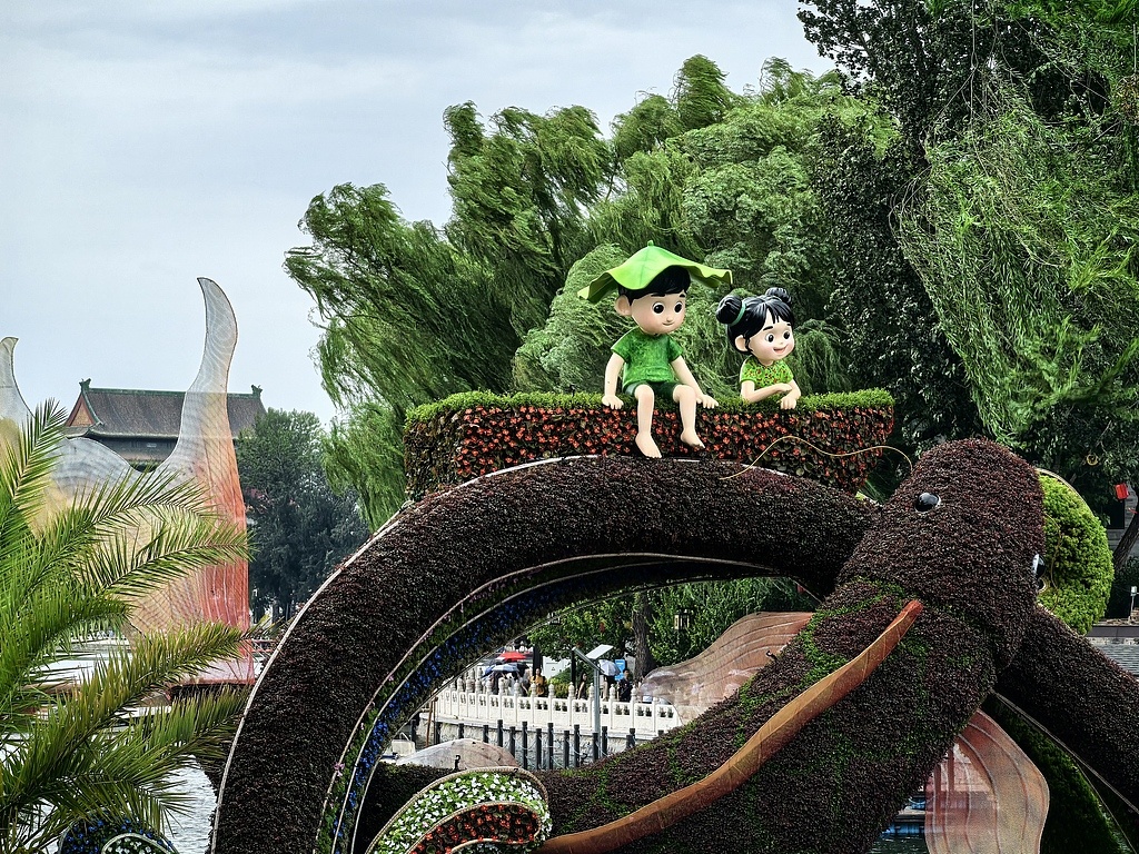Instalația impresionează prin reprezentarea peștilor carpe ce par că sar din apă, ape curgătoare și copii jucăuși, evocând energia și vitalitatea culturii chineze. Cu o înălțime de cinci metri, floarea centrală devine un punct de atracție atât pentru turiști, cât și pentru localnici.