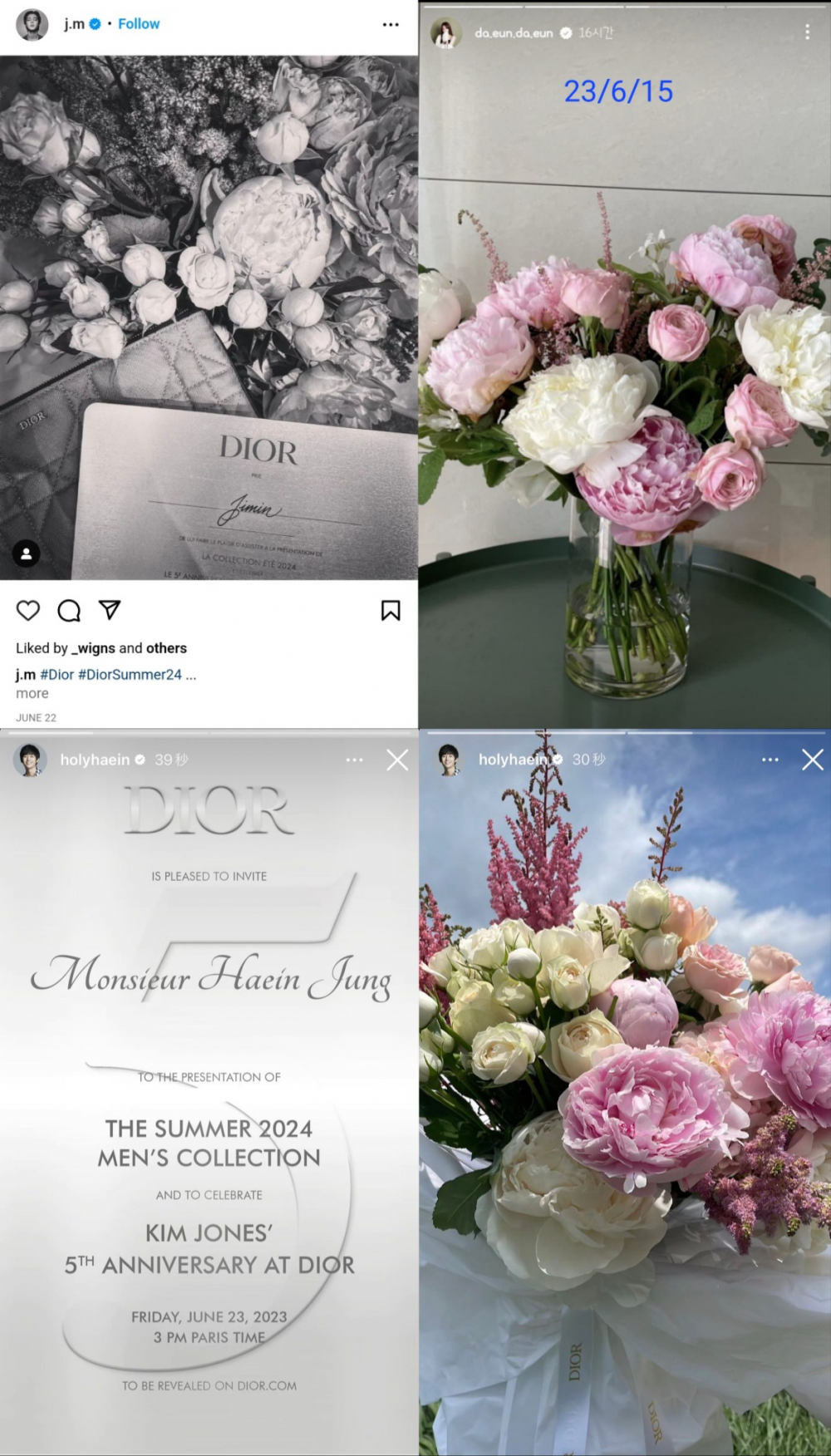 „Nu e oare și Jung Hae In care a primit flori doar pentru că e ambasador Dior? Jimin e și el ambasador, așa că amândoi au primit același buchet. Oamenii subliniază doar că florile au apărut și pe Instagramul ei.”