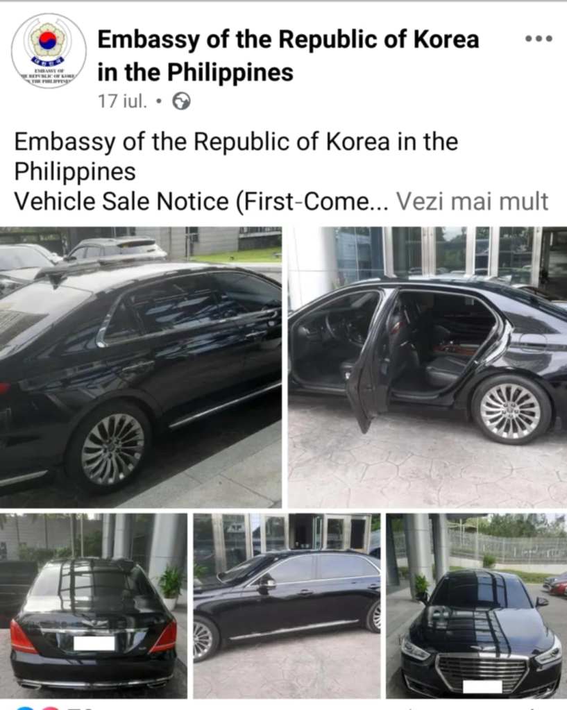 Dacă ați visat vreodată să conduceți o limuzină oficială, folosită de diplomați, trebuie să știți că această ofertă a ajuns prea târziu! Uită de eBay și site-urile obscure – pentru a pune mâna pe o bijuterie pe patru roți, trebuie să urmărești paginile oficiale ale ambasadelor din întreaga lume. Cea mai inedită ofertă auto a fost făcută de Ambasada Republicii Coreea din Filipine, care a scos la vânzare un Hyundai Genesis G90.